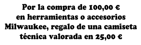 Por la compra de al menos 100€ en herramientas o accesorios Milwaukee te regalamos una camiseta técnica valorada en 25€
