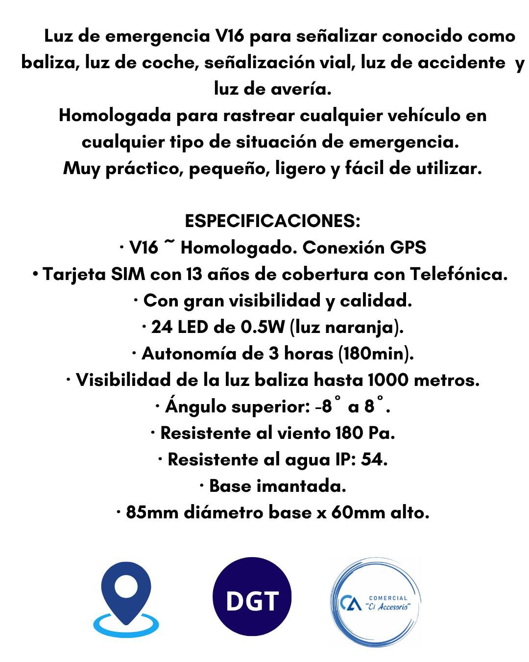 Obligatoria en España a partir del 1 de enero de 2026. Conectada con la DGT 3.0 por 33€ en Comercial "El Accesorio". Baliza de emergencia localizable V16 homologada por la DGT.